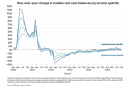 Même si les ménages à revenus élevés ont continué à connaître de légères baisses de leurs soldes bancaires (seulement -2 % en octobre 2025), probablement en raison de transferts vers des comptes à plus haut rendement ou des comptes de courtage en investissement, les ménages à faibles revenus ont de nouveau enregistré une croissance annuelle positive de leurs soldes bancaires en septembre 2024. Malgré ces changements de stratégie d’épargne, l’approximation des réserves totales de liquidités (y compris les transferts d’investissement) montre que la croissance a été positive pour toutes les catégories de revenus au moins l’année dernière.